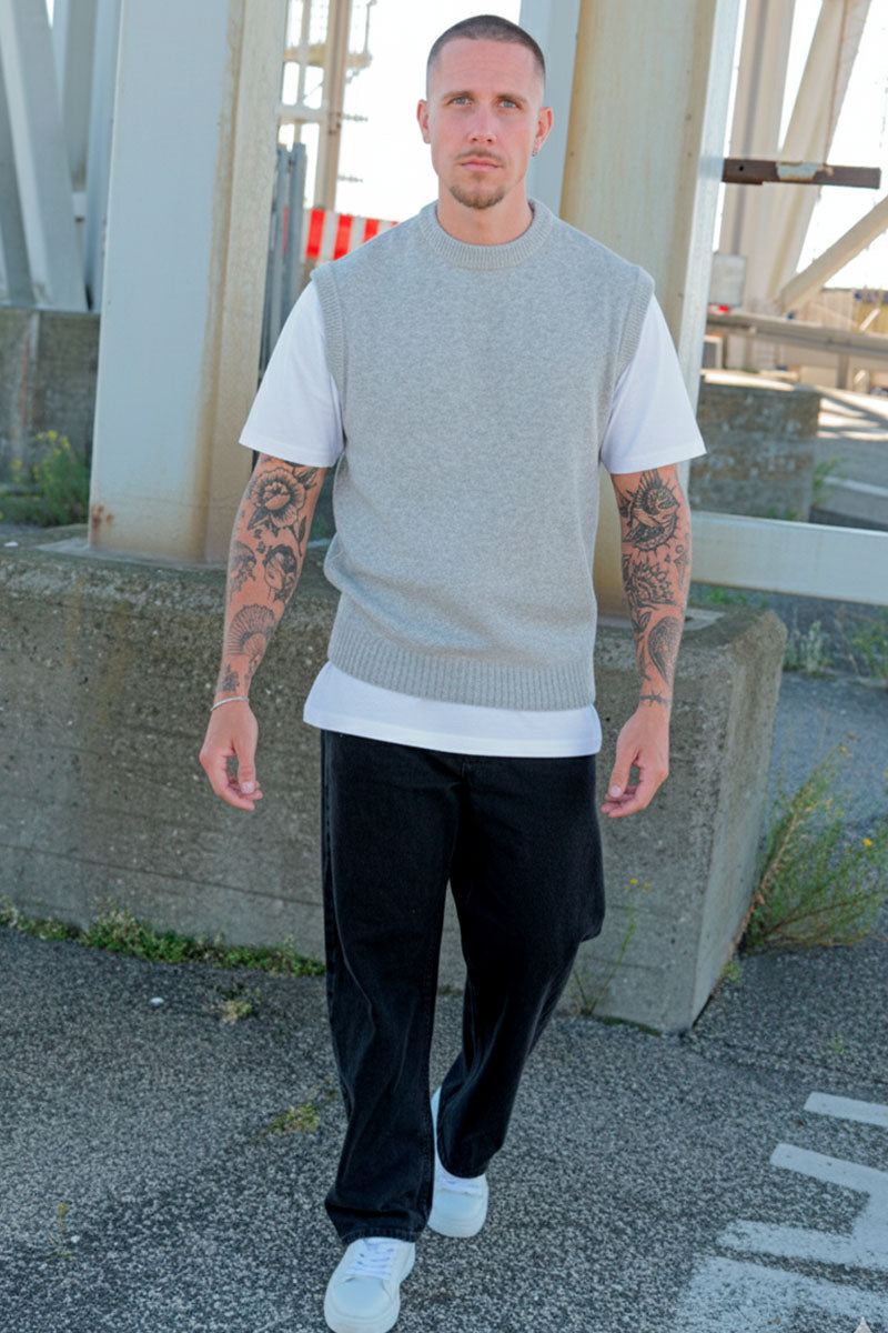 - Gilet tricot gris clair en coupe relaxed fit