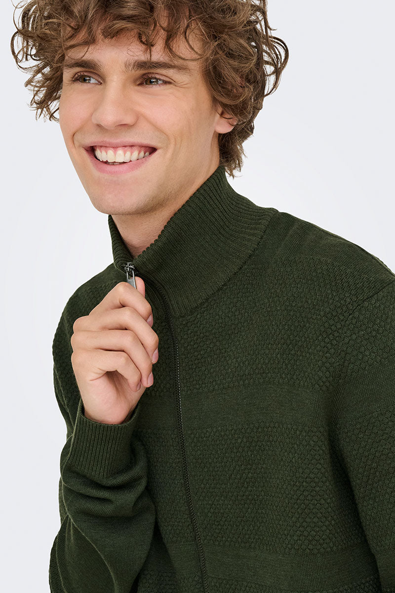 Malik Regular Zip Cardigan Knit Olive Night