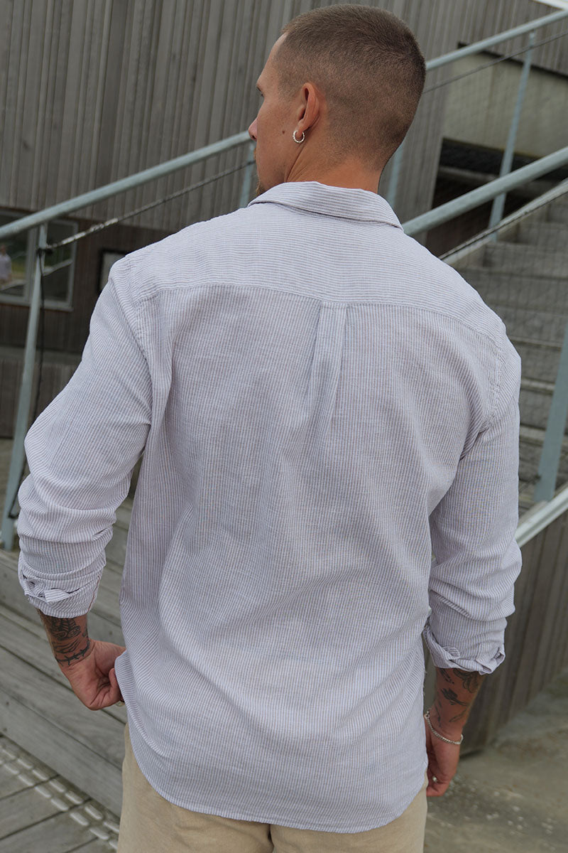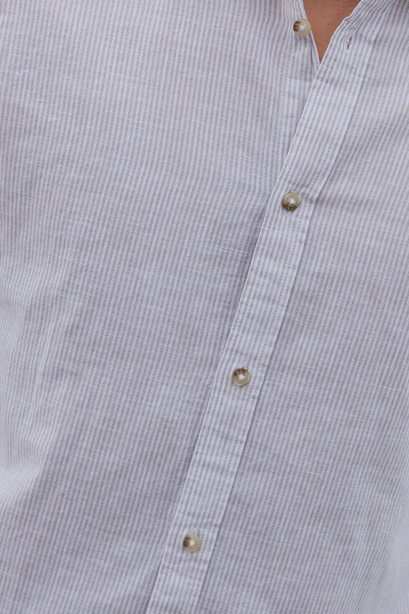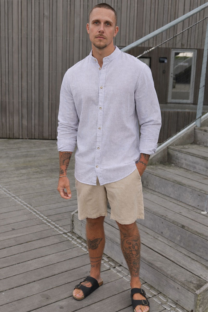 Summer Shirt Linen Blend Band LS Crockery