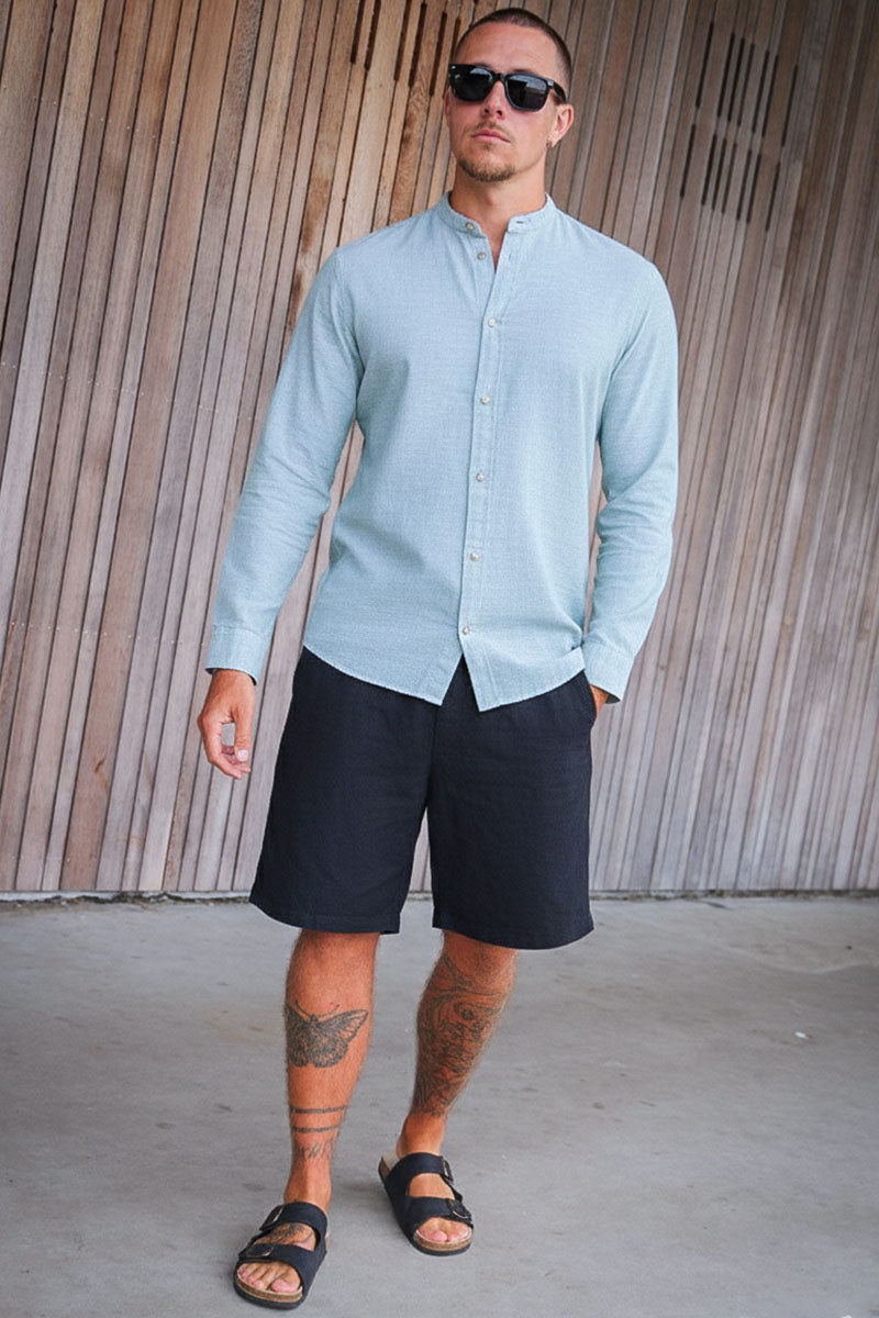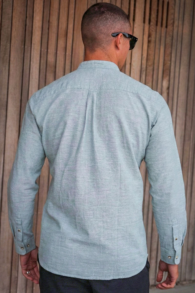 Summer Shirt Linen Blend Band LS Granite Green