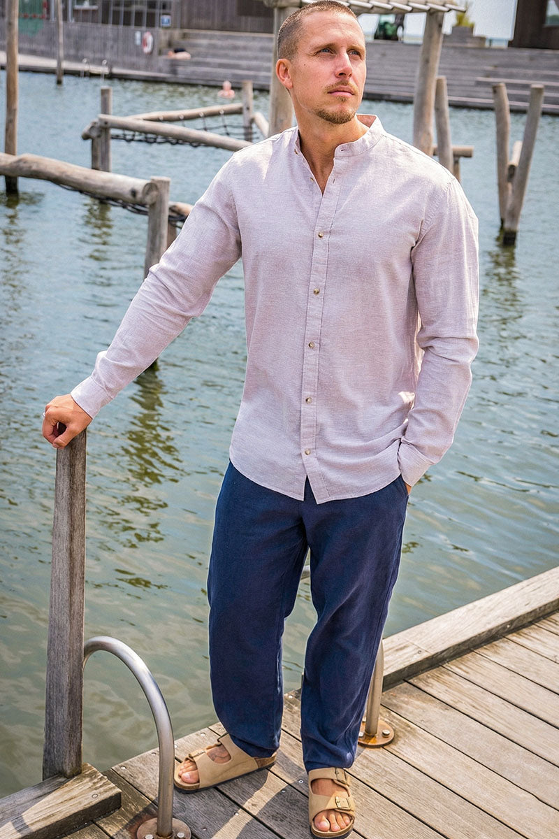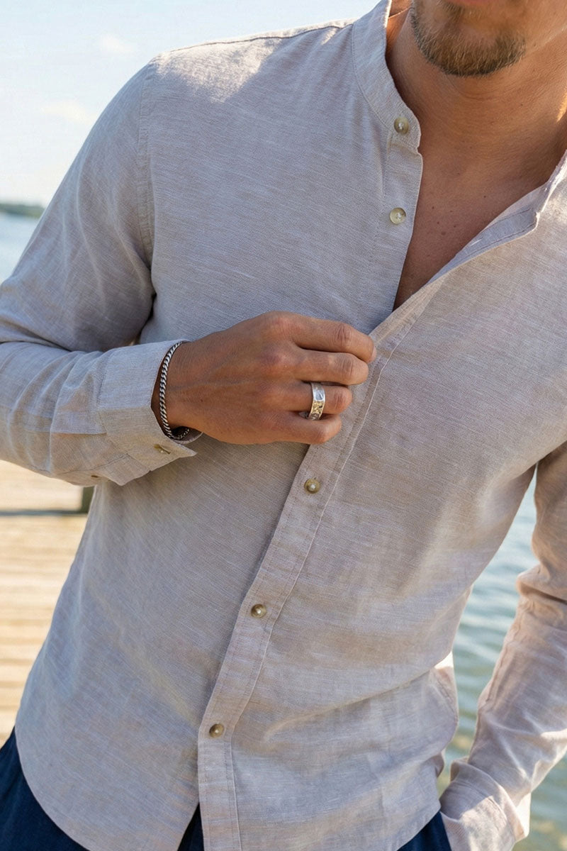 Summer Shirt Linen Blend Band LS String
