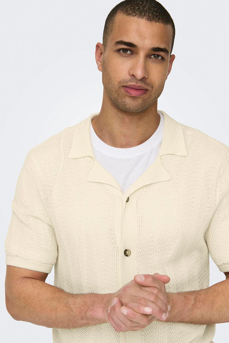 Diego Regular SS Knit Resort Shirt Antique White