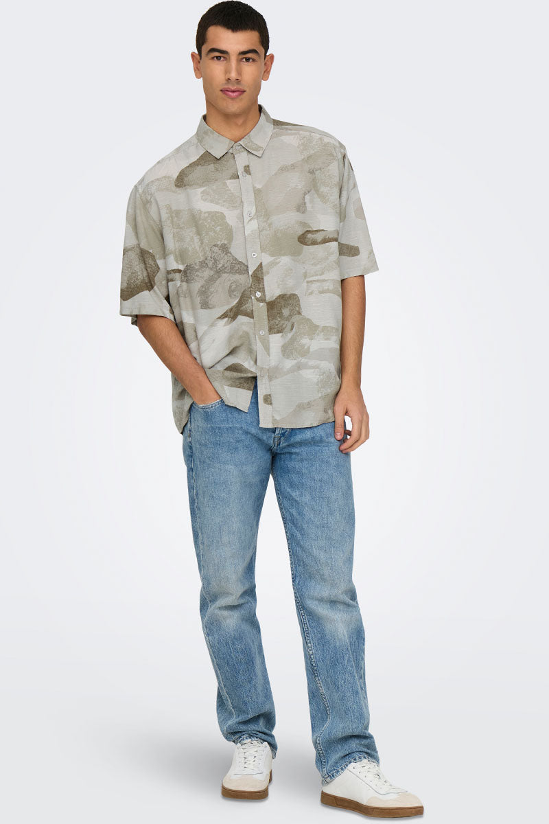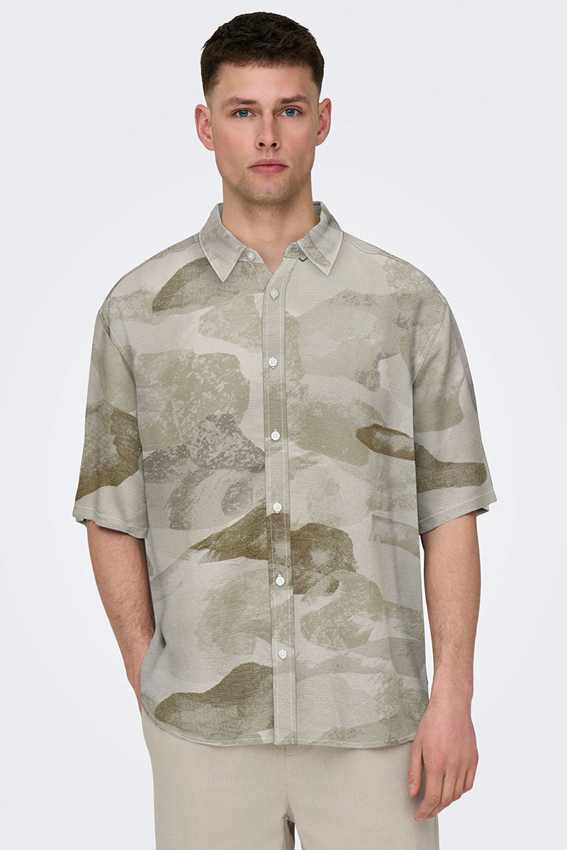 Bud Relaxed Fit AOP Linen Shirt Chinchilla