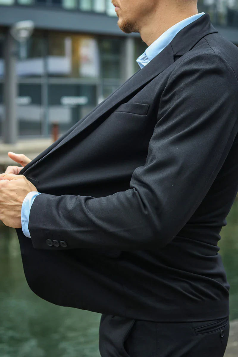 Ensemble, le blazer et le pantalon forment un set qui ressemble à un costume classique, mais qui se porte de manière bien plus décontractée. Le tissu stretch le rend idéal pour le travail, les réunions, les événements et le quotidien, où le confort est aussi important que le style. Une tenue qui a fière allure – et qui est encore plus agréable à porter.