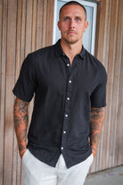 Caiden SS Linen Shirt Black