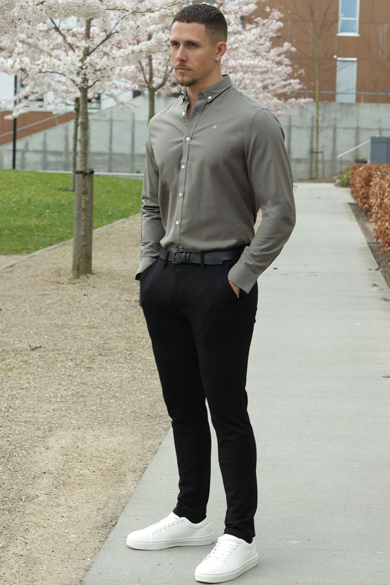 Oxford Stretch Plain L/S Dusty Green