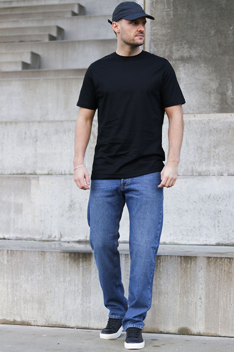 - Jeans avec coupe décontractée.