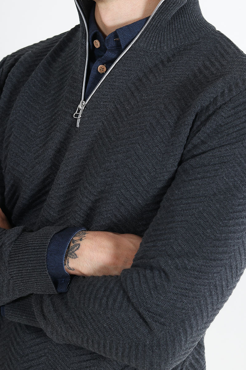 Carlo Cotton half zip knit Charcoal Mix