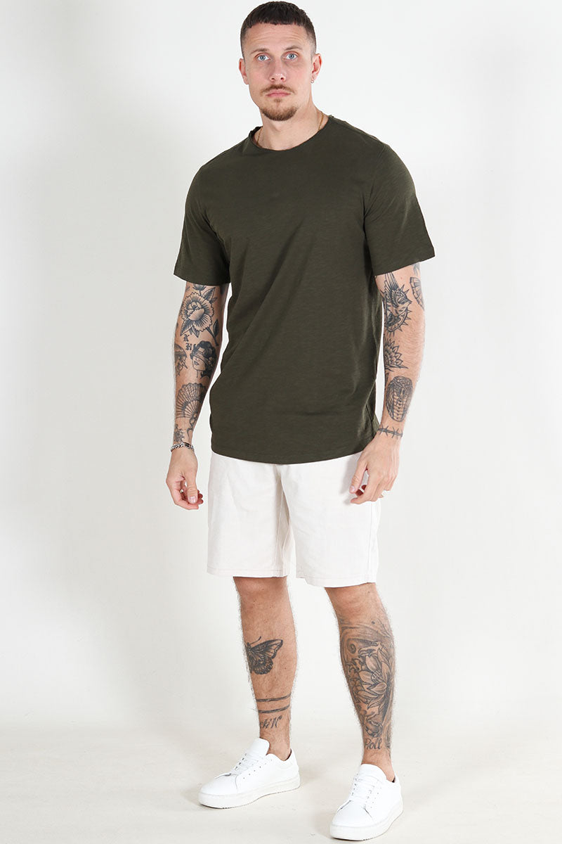 Ce t-shirt à col rond présente une coupe régulière, assurant un confort optimal au quotidien. Confectionné dans un tissu mélangeant coton et coton biologique à parts égales, il allie douceur et respect de l’environnement. Sa couleur verte foncée apporte une touche discrète et élégante, facile à assortir avec différents styles.