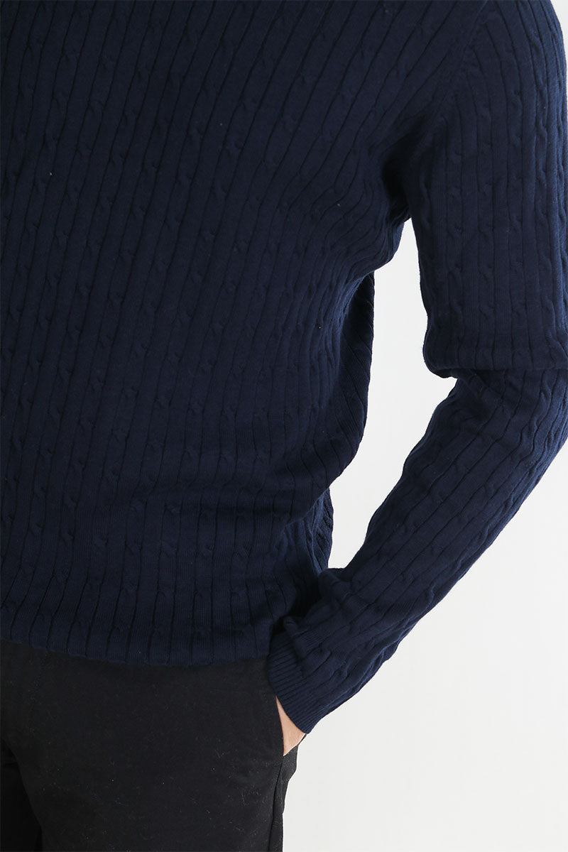 Cable Cotton Knit Sky Captain