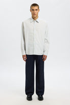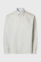 Cette chemise rayée est conçue dans un style boxy avec un col classique et des manches longues à épaules tombantes, idéale pour un look décontracté et contemporain. Sa finition facile à repasser facilite l’entretien, tout en offrant un confort appréciable grâce à sa composition en coton biologique et coton traditionnel. Les poignets sont boutonnés pour un ajustement soigné, et le bas arrondi apporte une touche moderne à la silhouette.