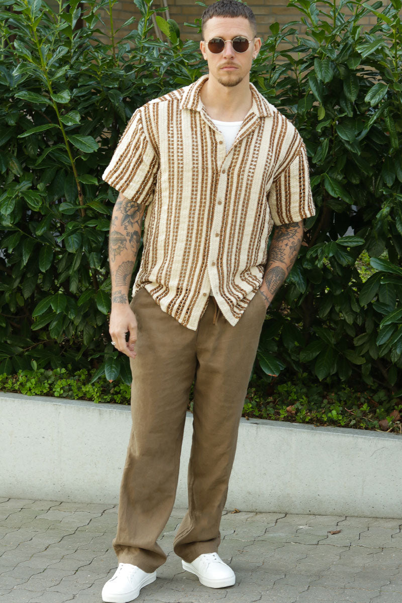 Dani Chrochet Resort SS Shirt Brown Stripe