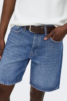 Profitez du beau temps et adoptez ce short en denim, idéal pour les garden-parties, les vacances d'été ou le quotidien. Ce short au coupe droite est confectionné dans un tissu à base de coton naturel, offrant une texture douce et respirante. Son coloris bleu denim foncé présente un effet légèrement délavé pour plus de caractère, tandis que des passants de ceinture ajoutent à sa praticité.