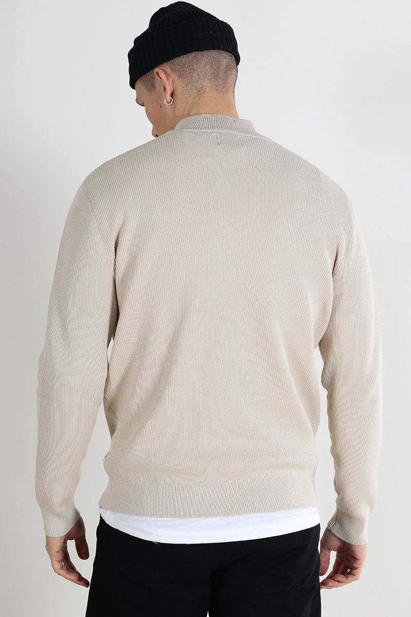 Phil Cotton Half Zip Knit Desert Taupe