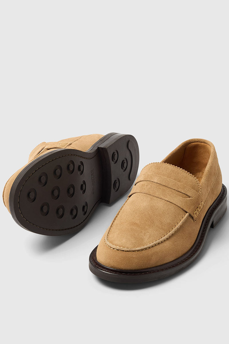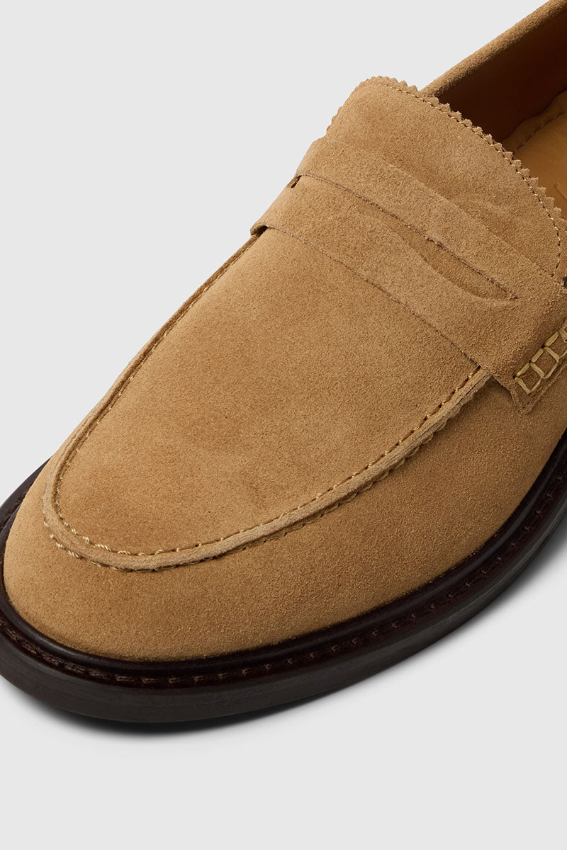 Carter Suede Low Penny Loafer Warm Sand