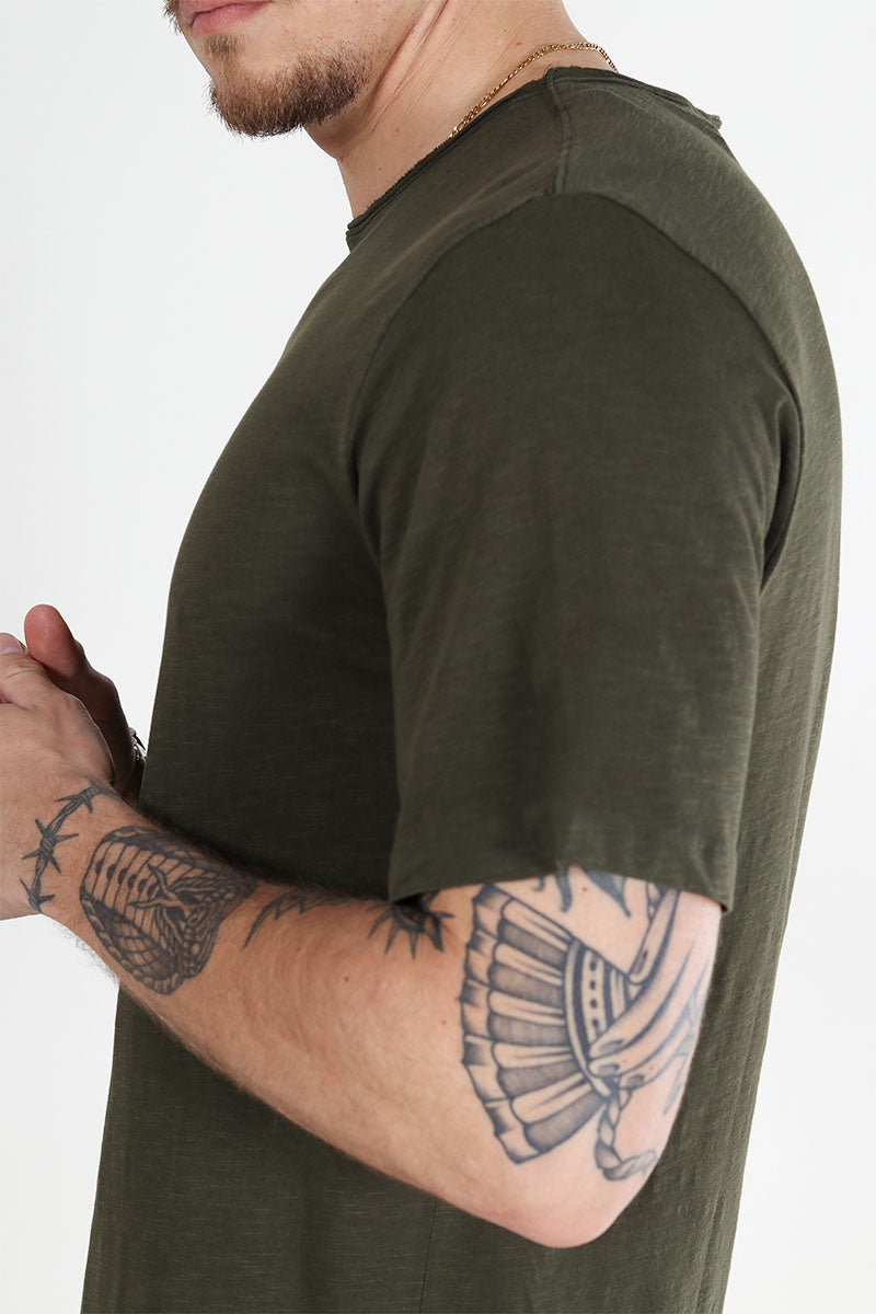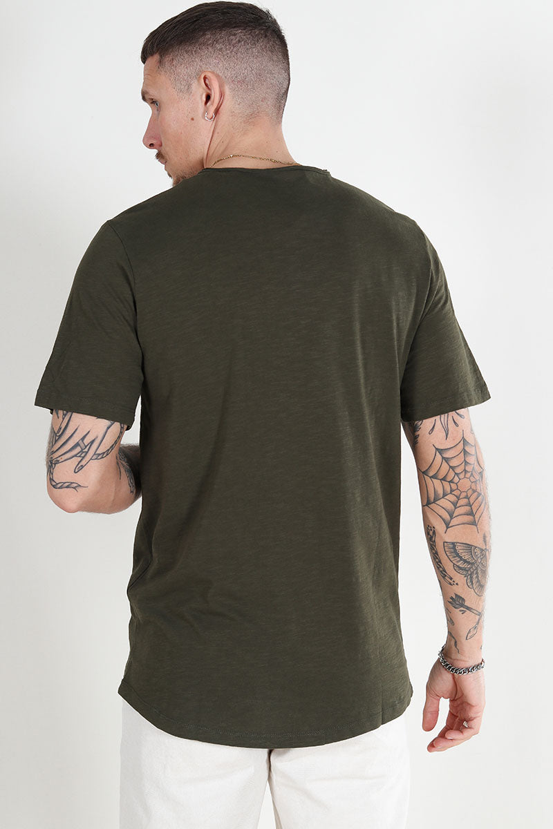 Ce t-shirt à col rond présente une coupe régulière, assurant un confort optimal au quotidien. Confectionné dans un tissu mélangeant coton et coton biologique à parts égales, il allie douceur et respect de l’environnement. Sa couleur verte foncée apporte une touche discrète et élégante, facile à assortir avec différents styles.