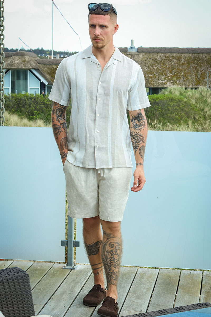 Caiden SS Stripe Linen Resort Shirt Vintage Khaki