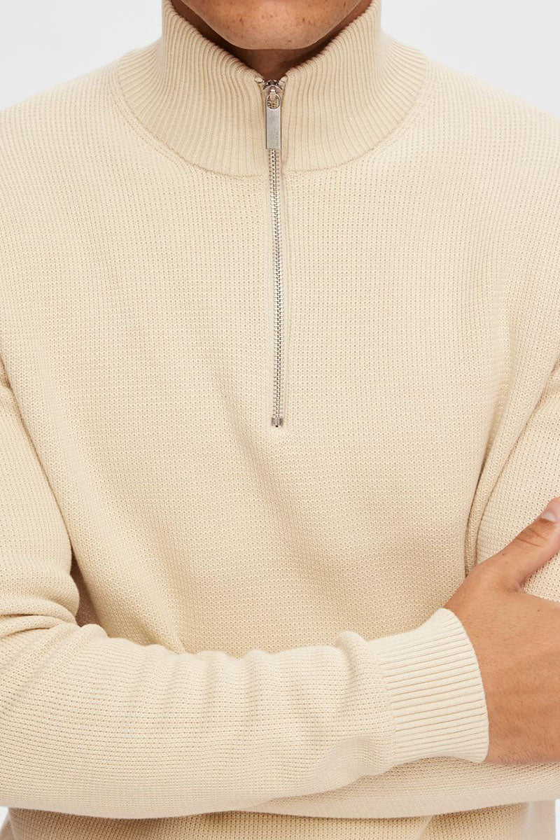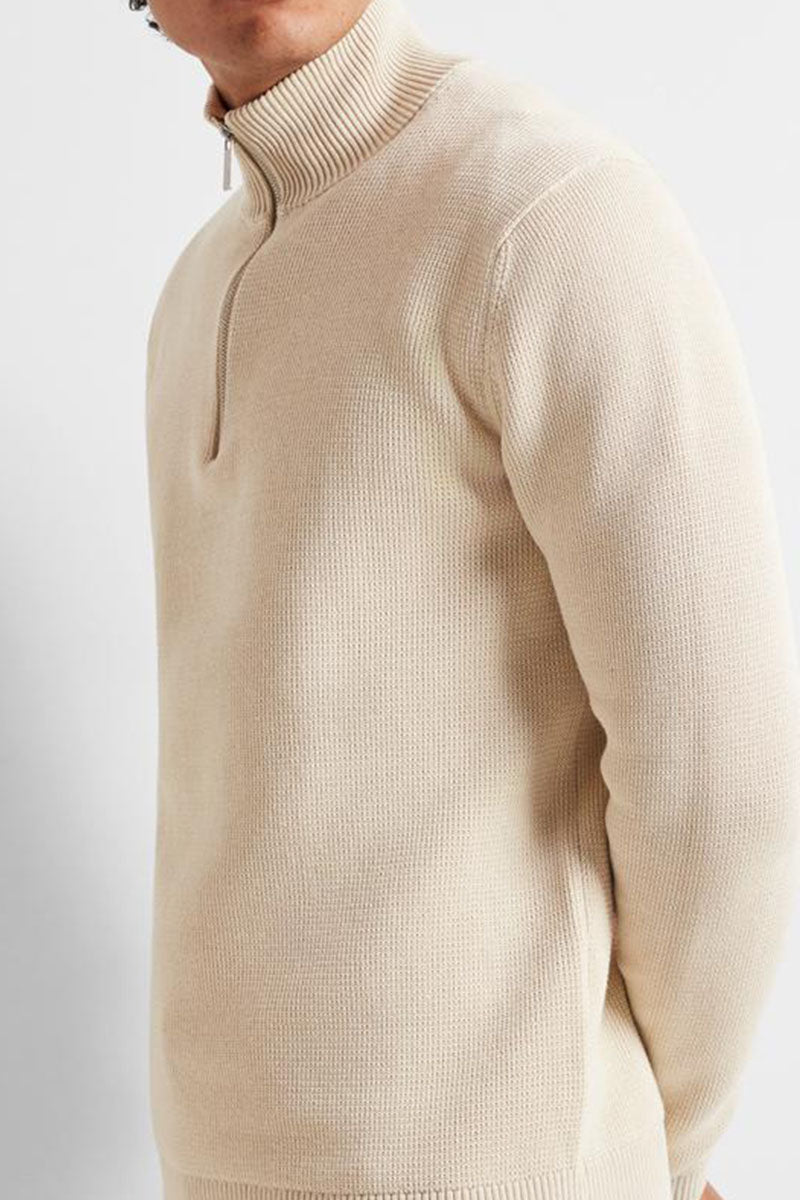 Dane LS Structure Knit Half Zip Oatmeal