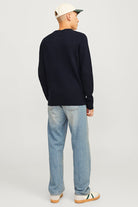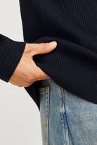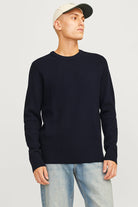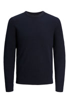 - Pulloverd bleu foncé à manches longues en coupe structure fit