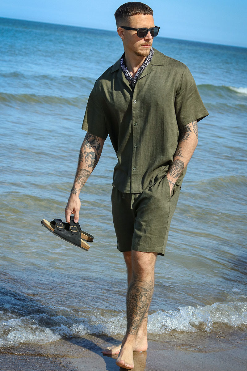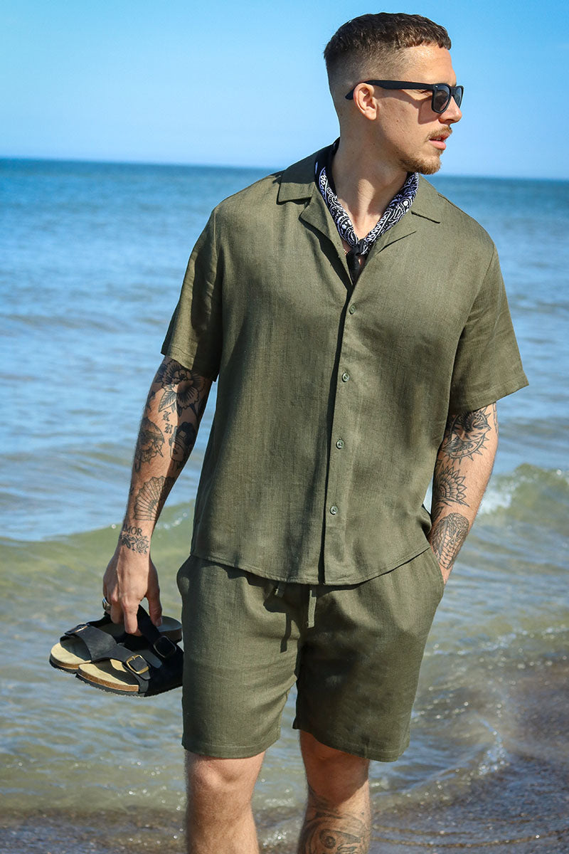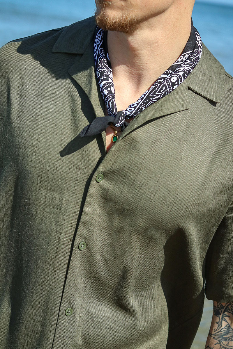 Kari Relaxed Cuba Shirt Viscose Linen Olive Night