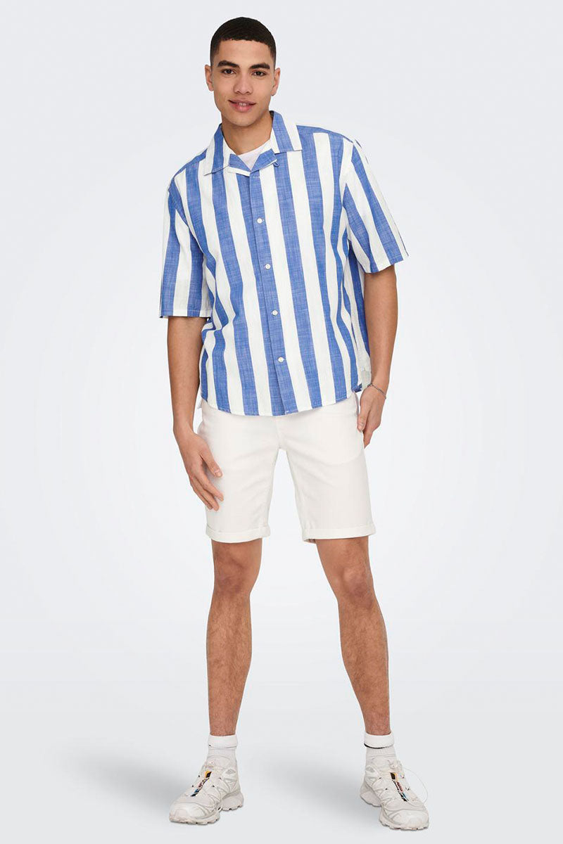 Tes Relax Slub Stripe SS Shirt Turkish Sea