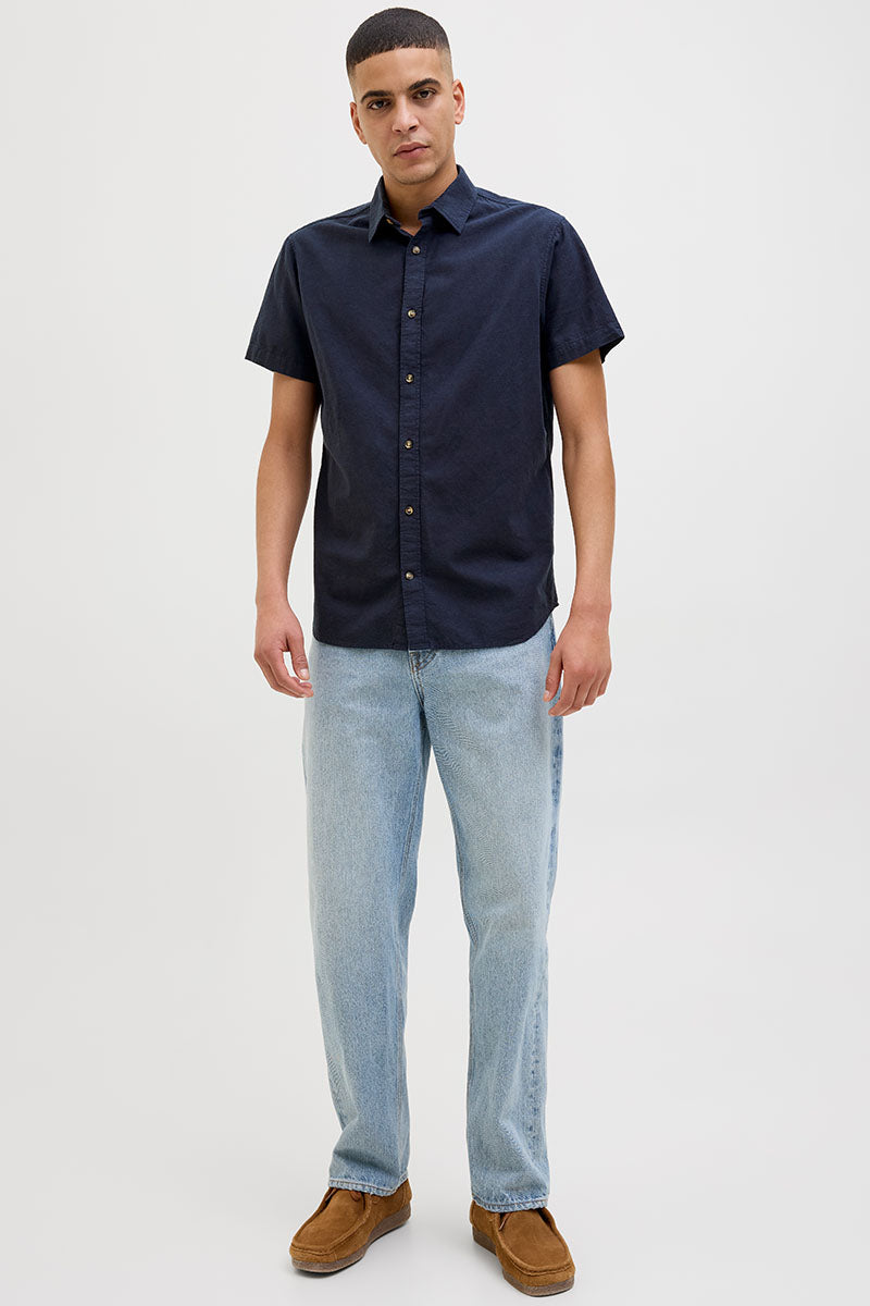 - Chemise en lin à manches courtes avec col classique.