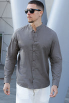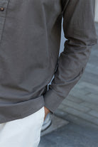 - Chemise grise à manches longues en coupe confort.