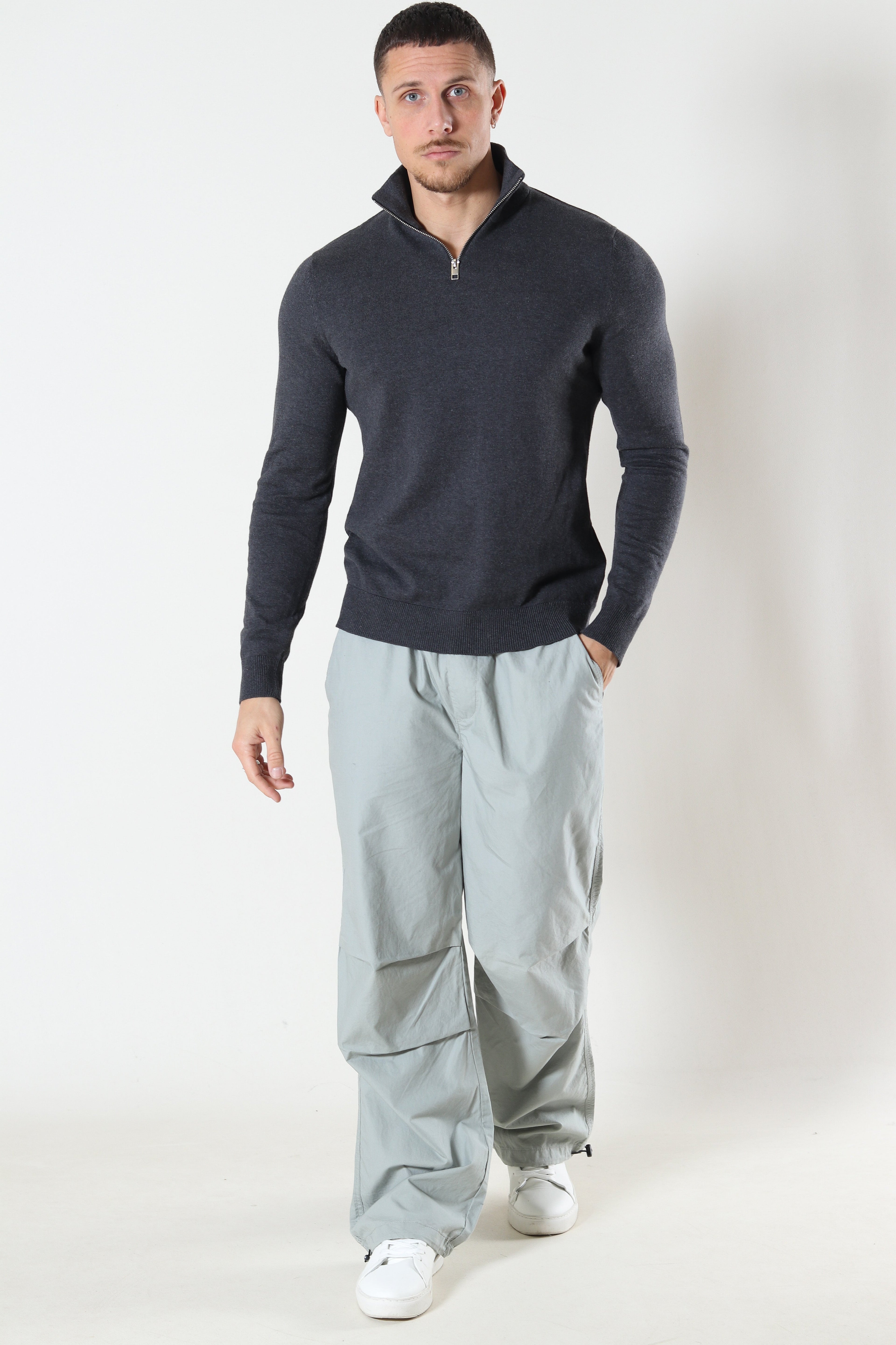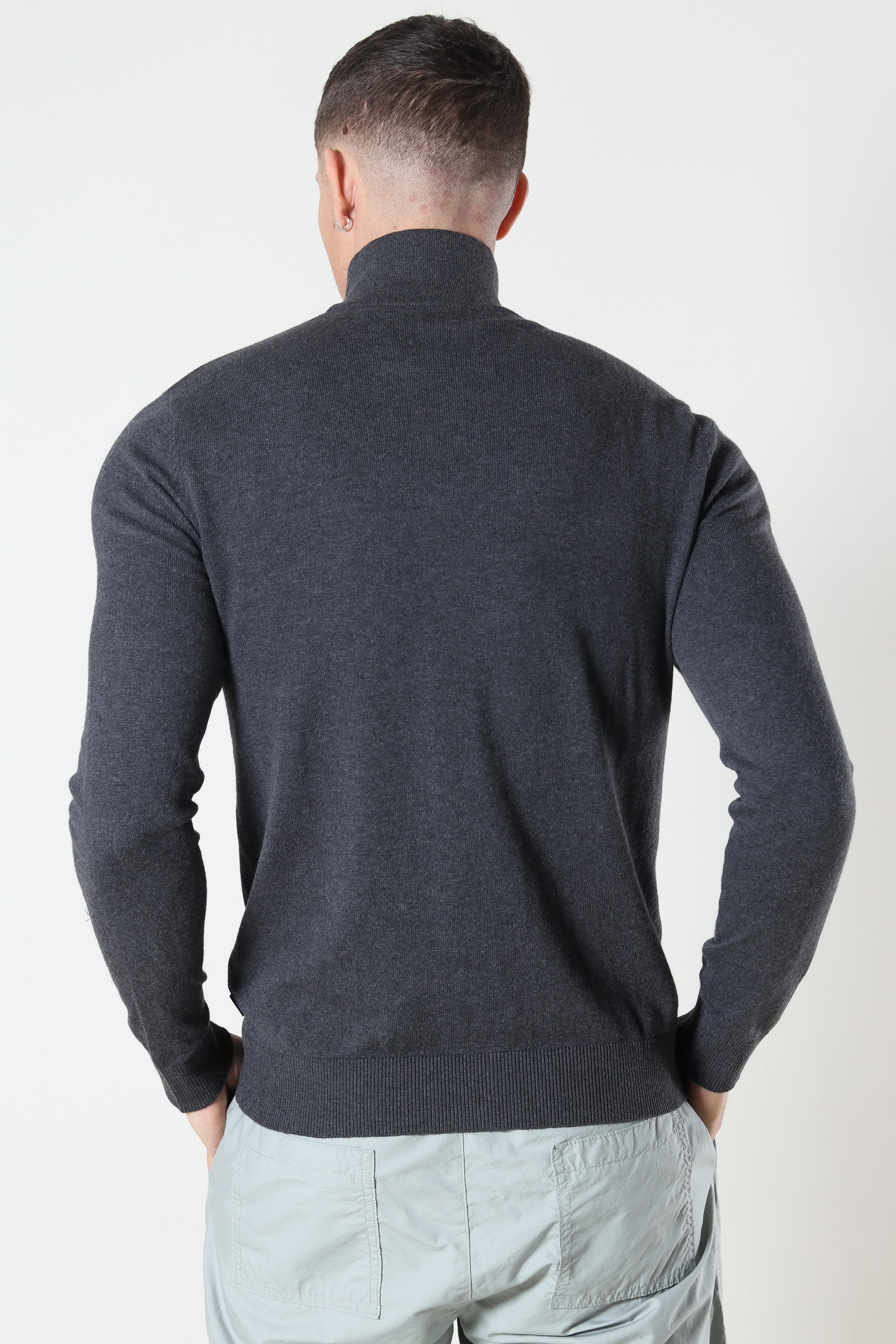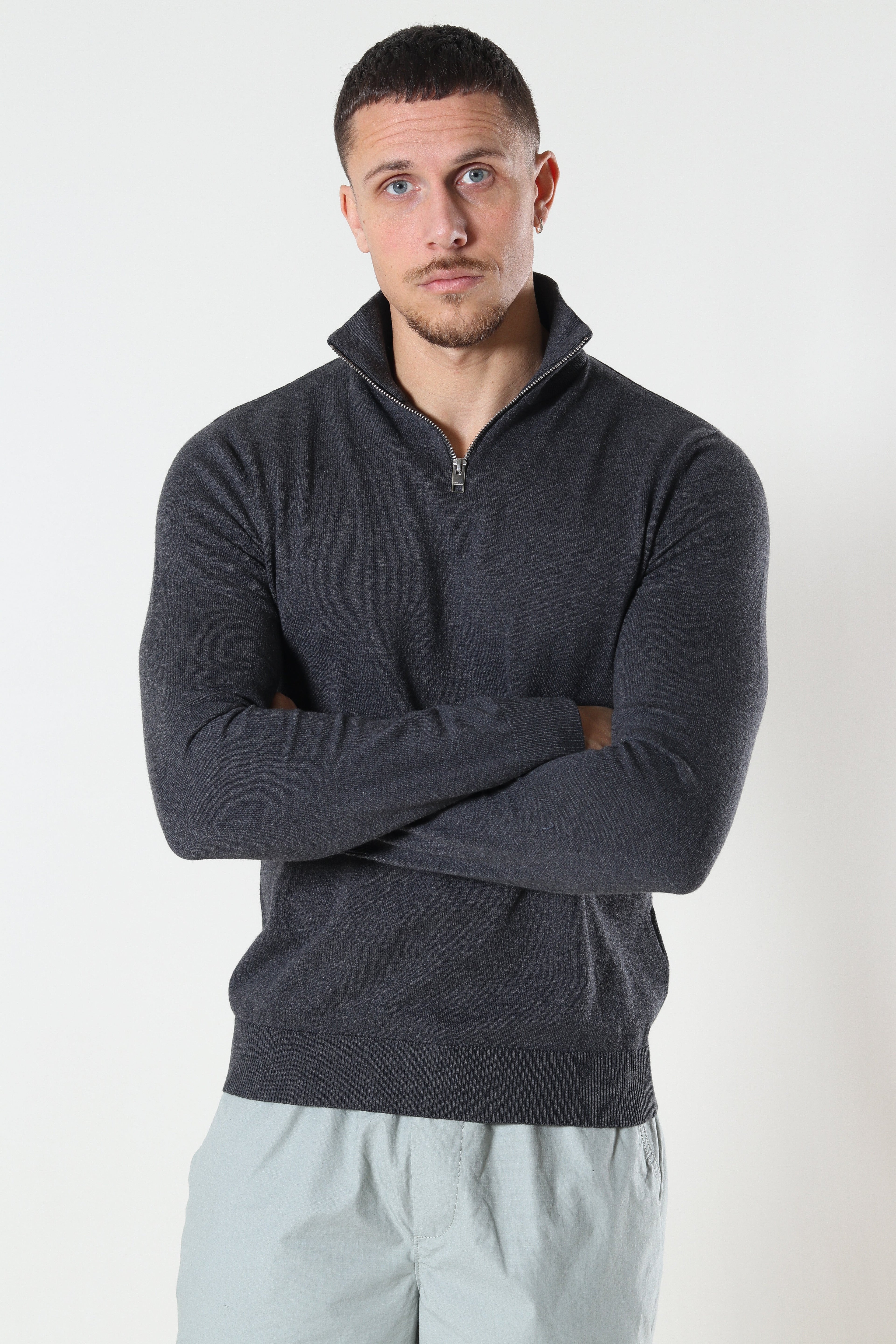 JJEEMIL KNIT HALF ZIP NOOS Dark Grey Melange