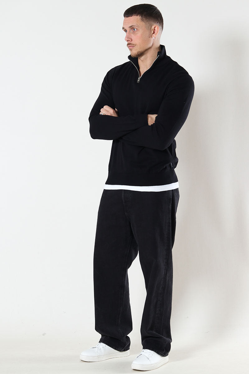 JJEEMIL KNIT HALF ZIP NOOS Black