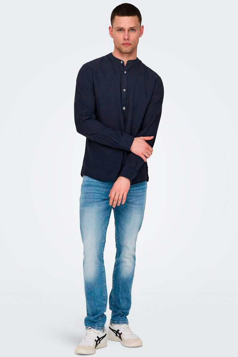 CAIDEN LS SOLID LINEN MAO SHIRT Night Sky