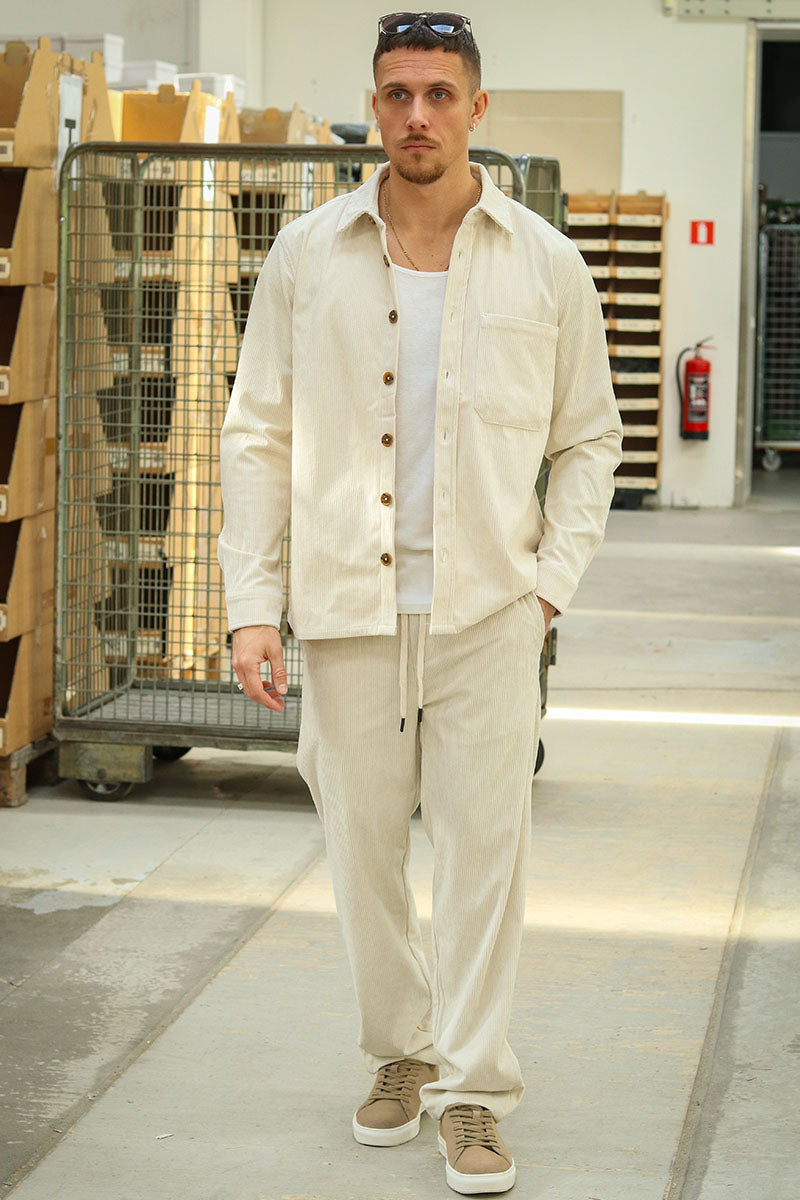 Cette chemise en velours côtelé de coupe régulière offre un style soigné pour le quotidien. De couleur pierre de pumice claire (#CAC2B9), elle présente un col chemise classique, des manches longues et une fermeture boutonnée, idéale pour les saisons printanières. Le tissu privilégie des fibres recyclées pour une approche plus responsable sans compromettre le confort.