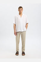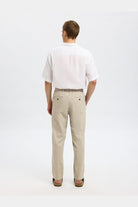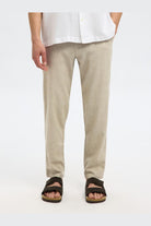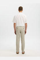 Ce pantalon chino pour homme offre une coupe slim fuselée mettant en valeur une silhouette moderne et élégante. Conçu pour un confort optimal au quotidien, il présente une taille mi-haute avec une fermeture à bouton et braguette zippée. La teinte Vetiver subtile et les détails raffinés complètent son style décontracté tout en restant sophistiqué.