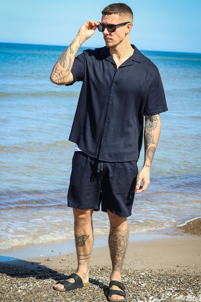 Kari Relaxed Cuba Shirt Viscose Linen Dark Navy