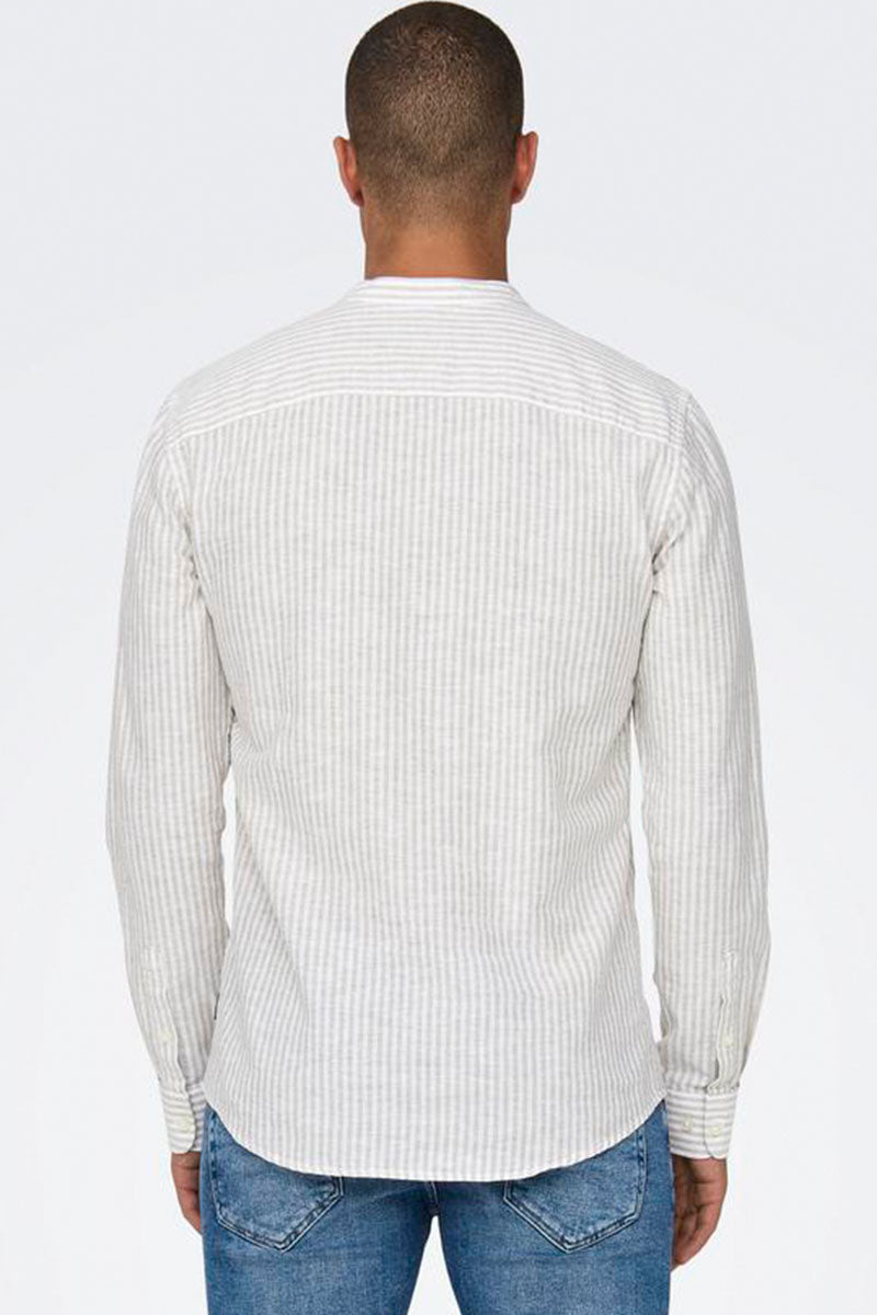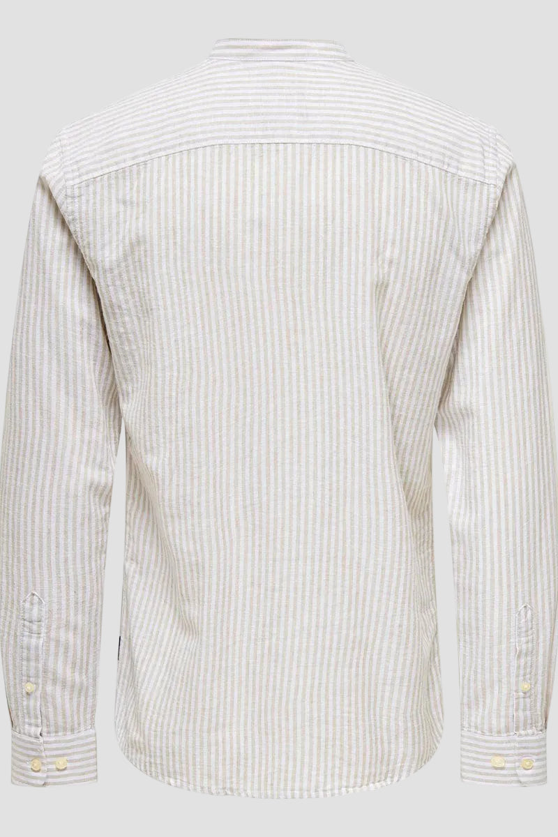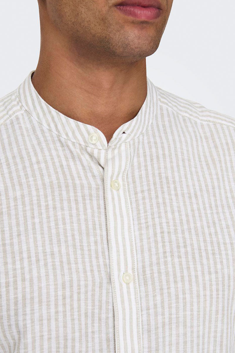 Caiden LS Mao Stripe Linen Shirt Chinchilla