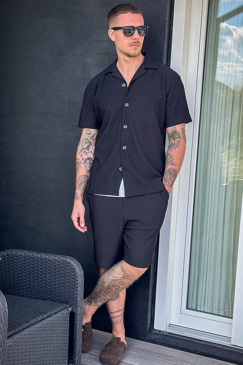 Relax Plisse Resort SS Shirt Black