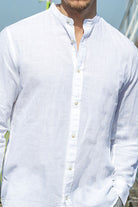 - Chemise en lin à manches longues avec col mao.