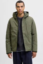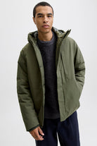 • Parka unie avec capuche