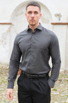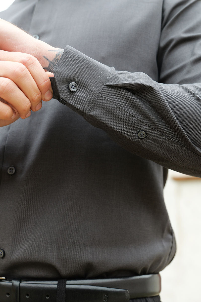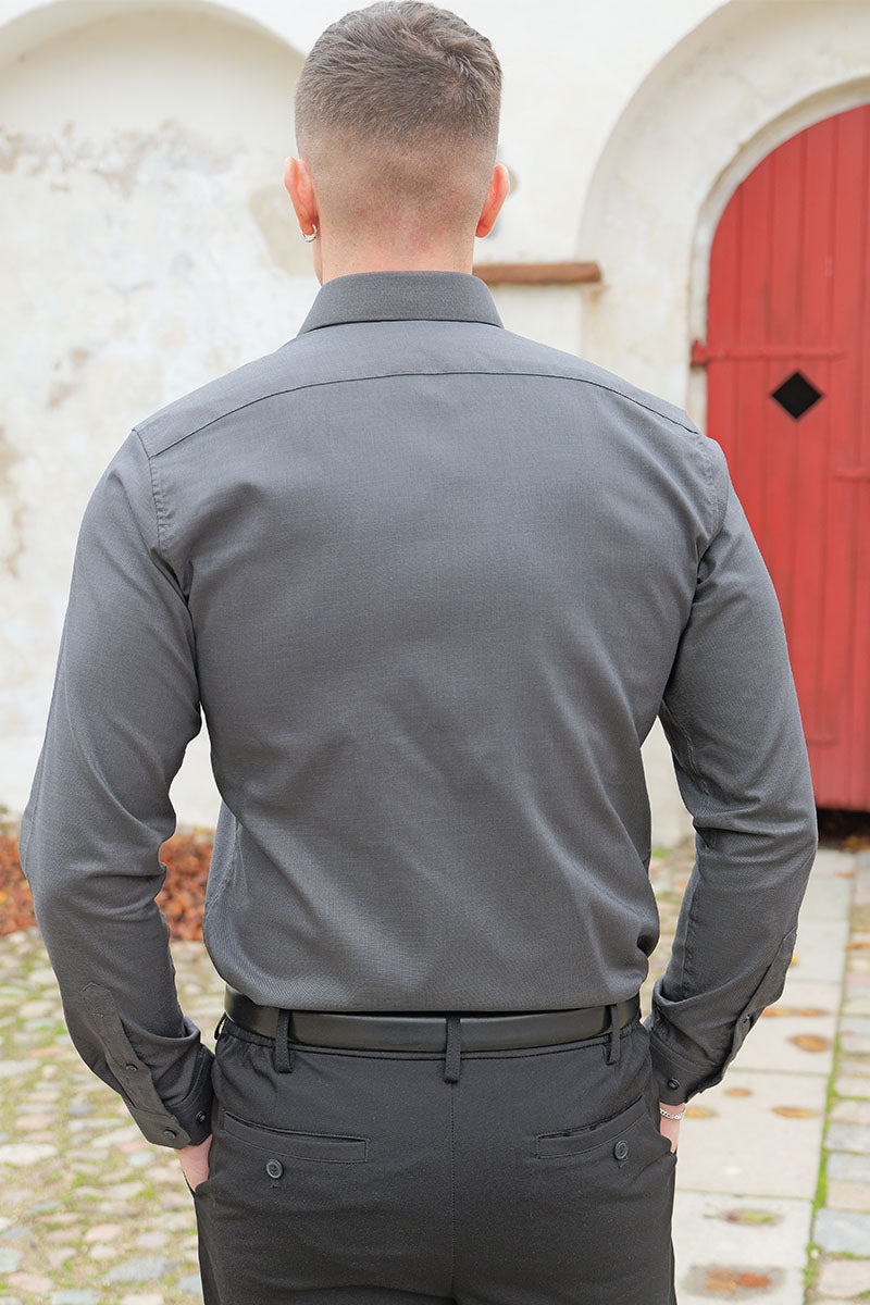 • Chemise manches longues gris foncé en coupe slim