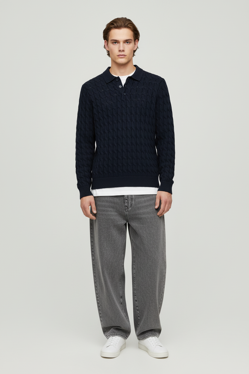 Kicker Cabel Polo Knit Dark Navy