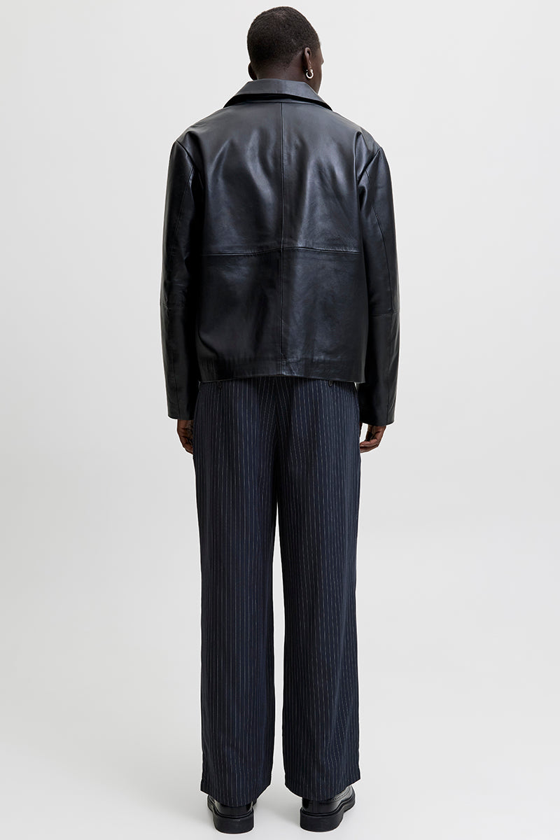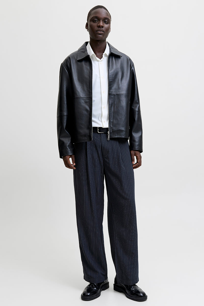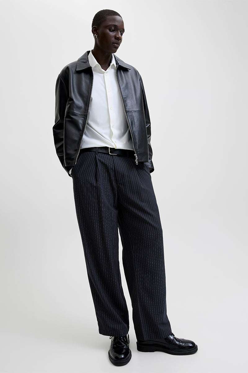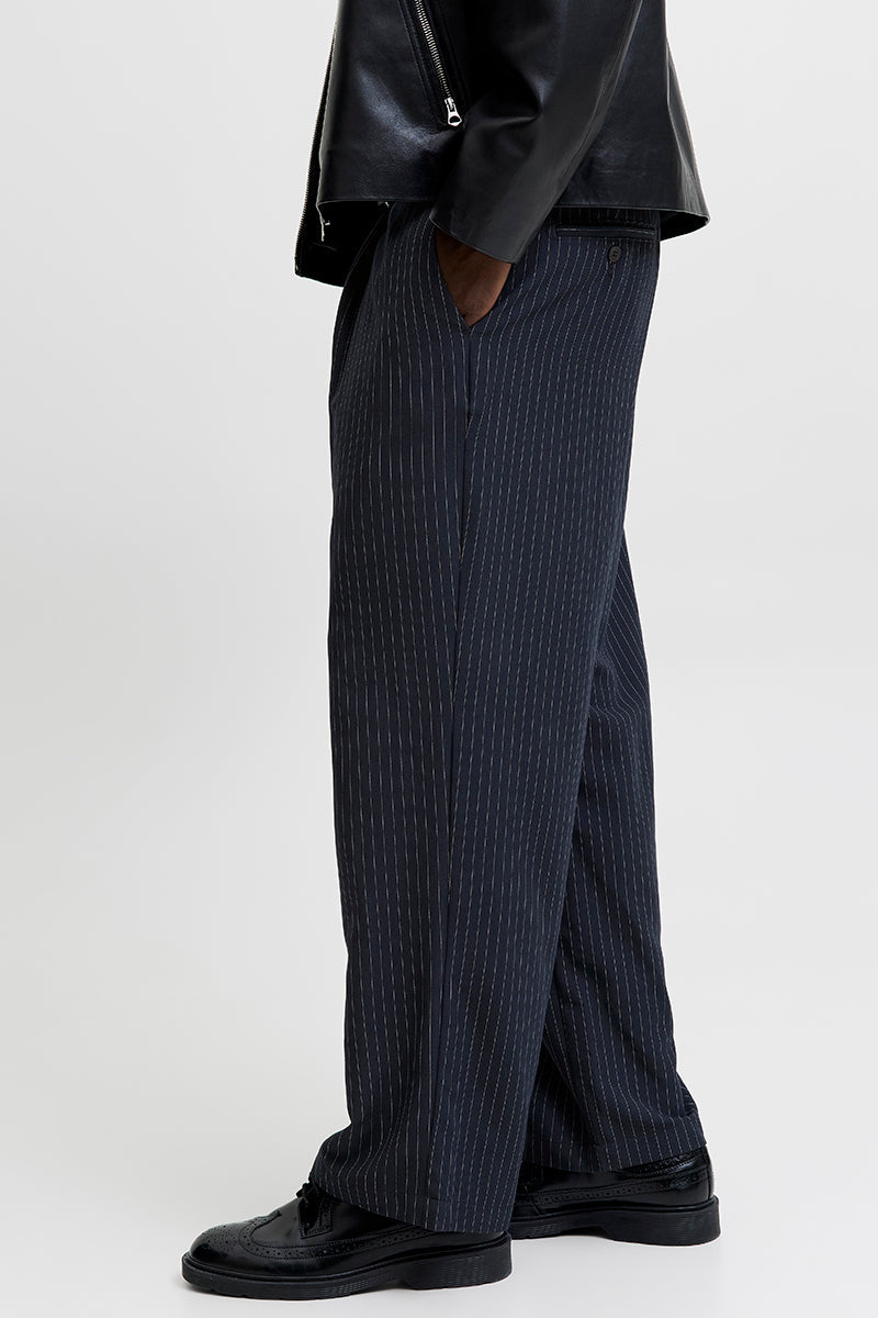 Bill Bamford Pleated Relaxed Fit Chino Dark Navy Stripe