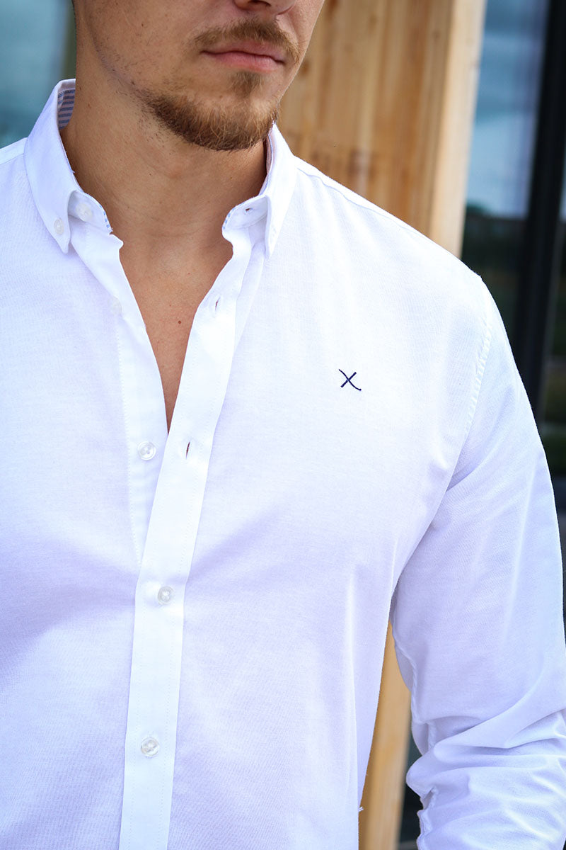 Oxford Stretch Plain L/S White