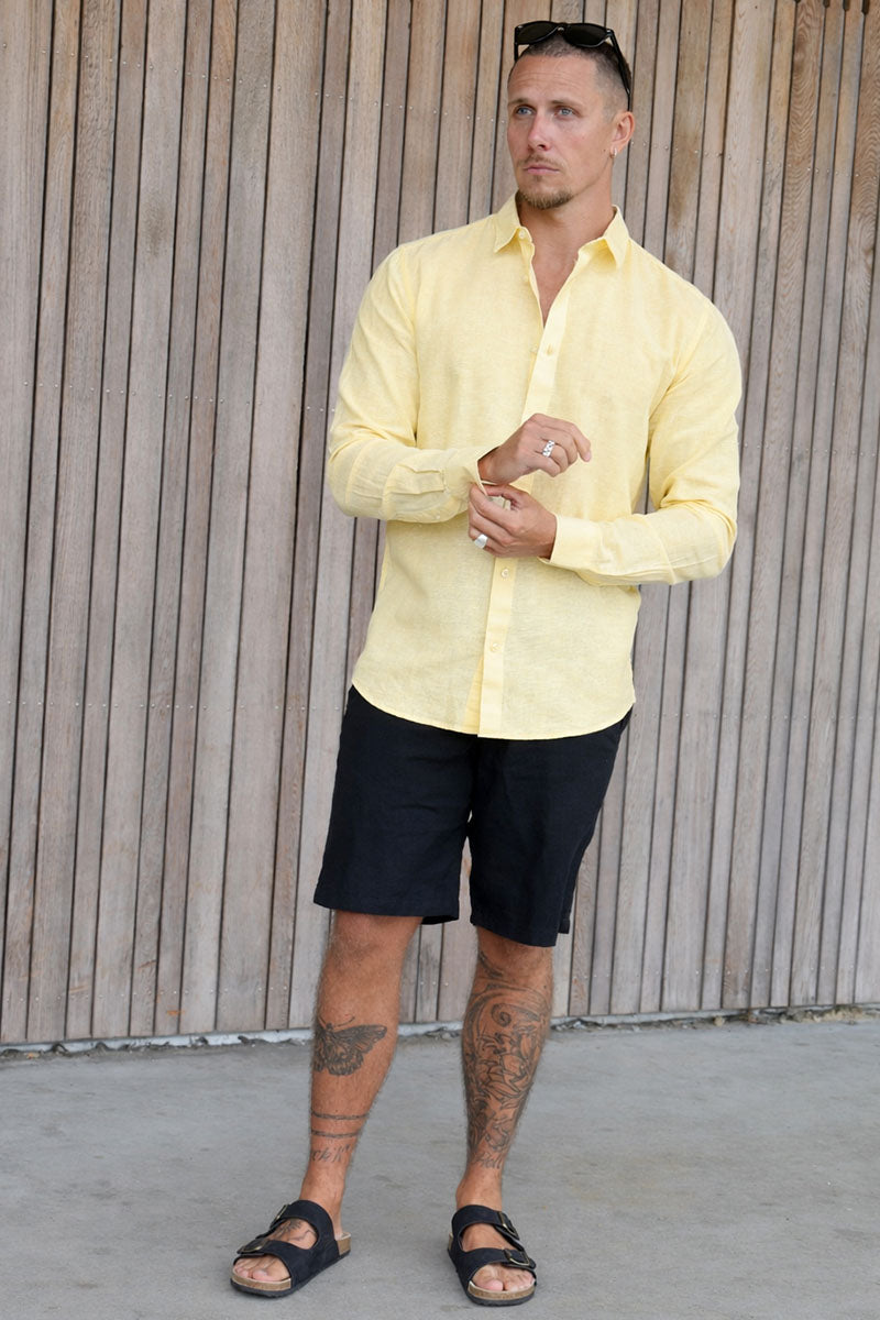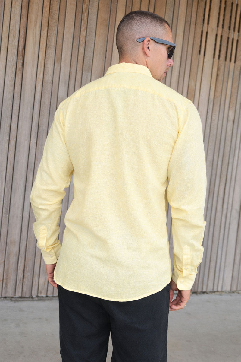 Caiden Life LS Solid Linen Blend Shirt Pastel Yellow